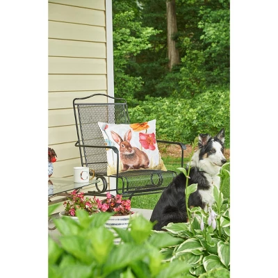 No matter the weather you can bring a ray of sunshine to your porch, balcony, living room, bedroom or patio with our Spring Softies accent pillow collection. This durable indoor/outdoor pillow collection features a printed spring bunny design in a unique watercolor style on quick-drying polyester cover. Find more from the Spring Softies collection, created in collaboration with artist Lisa Audit, to transform your home for the season of new beginnings. Crafted with a polyester cover and finished with a clean knife edge, these pillows are filled with plush polyester filling and sewn closed. Design is printed on one side, back of pillow is solid white. Size: 18 x 18 inches. Spot cleaning recommended.