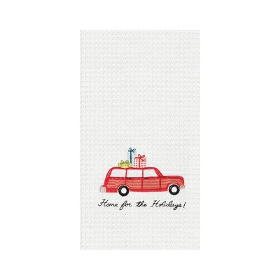 C&F Home 27″ X 18″ “Home For Holidays” Sentiment With Red Station Wagon Car Cotton Embroidered & Waffle Weave Kitchen DIsh Towel