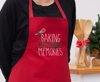 - Whether the Gingerbread Man leaps out of your oven and runs off or your peppermint fudge comes out just right, you’ll still be baking Christmas memories with this festive apron.