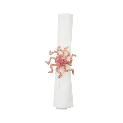 Decorate for the season with this wonderful Beaded Coral Octopus Napkin Ring Set of 6. Add the finishing touch to your table setting. Designed to work with any tabletop decor, they are perfect for family dinners and any other special occasions. They are crafted to work with any standard size napkin and can be wiped clean with a damp cloth when needed. Don’t let drab tableware distract your guests from a fabulous evening!