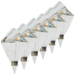 - This item includes 6 napkins which feature turned seams. Each napkin measures 20 x 20 inches, similar to the size of a bandana. The coordinating placemats and table runner are available separately.