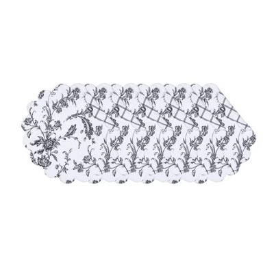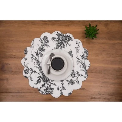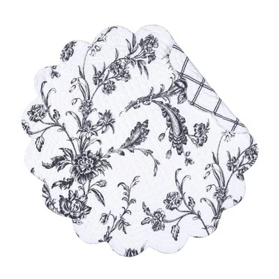 Bring a modern twist to any dining room with the Bleighton Black Tabletop from WILLIAMSBURG. Featuring classic quilting and an intricate black floral pattern, this tabletop is designed to provide an updated take on traditional style. Machine washable for easy care. Each piece of the Bleighton Black tabletop collection is reversible with two different designs makes it easy to mix, match and create new looks.
