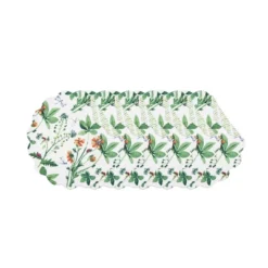 The Clover Bug placemat features a watercolor spring garden with sweet ladybugs and blooming flowers. Clover Bug reverses to a modern herringbone pattern for an even more versatile everyday style.
