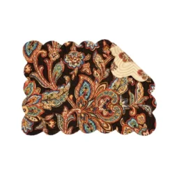 Enhance your dining experience with the Dorothy Autumnal Brown Quilted Cotton Rectangle Scalloped Paisley Floral Accents Placemats. This set of 6 placemats is designed to bring warmth and style to any table throughout the year. The intricate paisley floral accents in rich autumnal hues of brown, orange, and gold offer a sophisticated touch, perfect for holiday gatherings or daily meals. Whether you’re hosting a Thanksgiving dinner or enjoying a casual meal, these placemats make a charming addition to your dining table. Crafted from durable quilted cotton, they provide both comfort and functionality, offering a sturdy surface to protect your table while adding visual appeal. With scalloped edges and a classic design, these placemats are an ideal complement to your existing tableware and décor. They are machine washable, making them easy to clean and maintain for multiple uses. Whether for family meals or seasonal celebrations, these placemats will brighten any occasion and add a cozy, festive atmosphere.