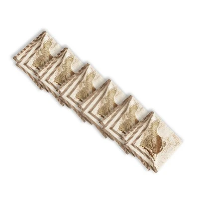 Set of 6 polyester cloth napkins featuring a festive turkey design in warm autumn colors. Perfect for Thanksgiving dinners or seasonal gatherings, these machine washable napkins add elegance, durability, and versatile charm to your holiday or everyday dining table.