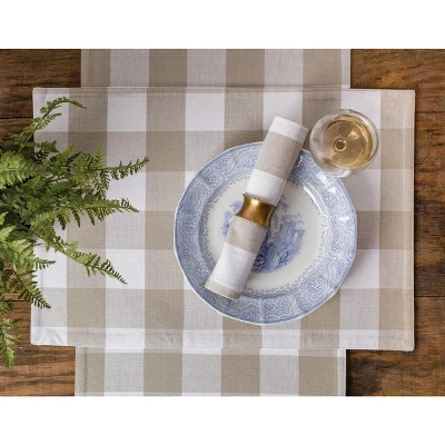 Bring a classic charm to your home with the Franklin tabletop collection. The checkerboard design and quintessential style bring a timeless element to your picnic or tabletop. Crafted of cotton, this double sided placemat is machine washable for easy care. Complete the look with the coordinating napkins and table runner or mix and match with your favorites for a new look. Machine washable on cold is recommended.
