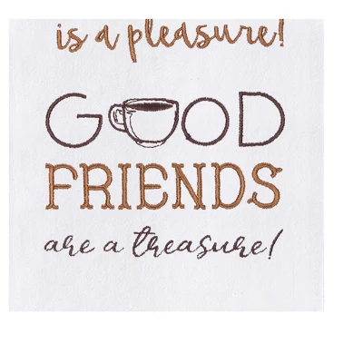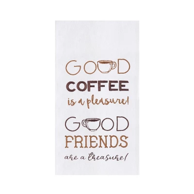 Celebrate a passion for coffee with the Good Coffee Is A Pleasure Kitchen Towel. Adorned with various text styles in rich brown hues, this printed towel creatively replaces some of the “o’s” in “Good” with a classic coffee cup design, adding a charming twist. Crafted from soft flour sack fabric, it’s perfect for drying dishes as an essential piece of decor for any coffee enthusiast’s kitchen!
