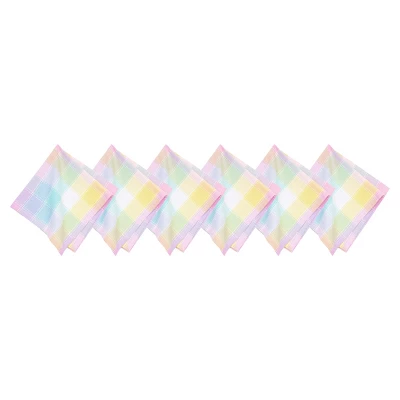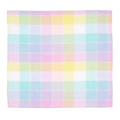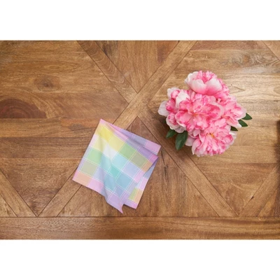 The Hana Color Block Plaid woven table linen collection is a stunning ensemble that boasts a plaid design intricately woven with a vibrant spectrum of pastel hues. This delightful array of colors evokes the image of a flourishing garden in springtime, reminiscent of an assortment of delicate blooms in full bloom.