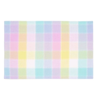 The Hana Color Block Plaid woven table linen collection is a stunning ensemble that boasts a plaid design intricately woven with a vibrant spectrum of pastel hues. This delightful array of colors evokes the image of a flourishing garden in springtime, reminiscent of an assortment of delicate blooms in full bloom.