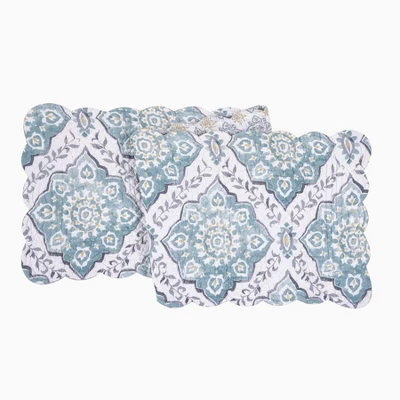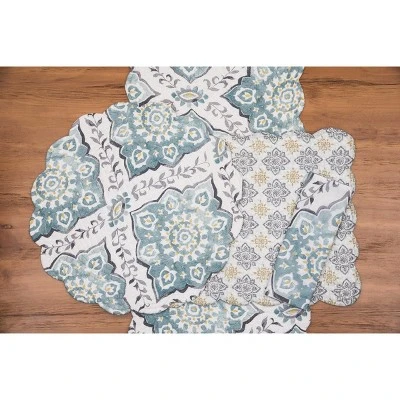 Refresh your space with the Harlen quilted tabletop collection. Its intricate mosaic design, featuring a diamond medallion print in blue and gray, with pops of yellow, offers a unique, modern look, while the reversible quilt adds extra versatility for your bedroom. Constructed from durable fabric, the Harlen set is machine washable for easy care. Each piece of the Harlen tabletop collection is reversible with two different designs makes it easy to mix, match and create new looks.