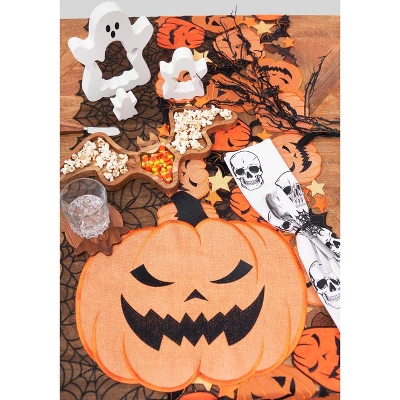 - Features a festive jack o’ lantern and bat pattern, perfect for enhancing your Halloween table décor. Its bold seasonal design adds charm and warmth, making it ideal for autumn gatherings, themed dinners, and seasonal decorating.