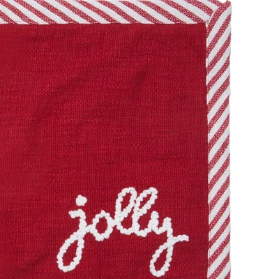 Discover the perfect holiday delight with C&F Home’s Jolly tufted tabletop collection. Get cozy with red linens outlined with a classic peppermint-inspired red and white stripe, while cursive jolly text adds a chic and cheerful touch. Perfect for any holiday festivities. Stay with and accompany us during our continued home décor magical ventures every season years after years.