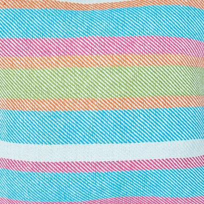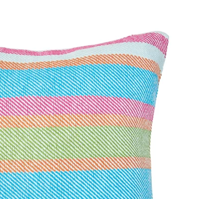 Brighten your home with the vibrant summer style of Key Lime Stripe woven accent pillow. A cheerful array of fuchsia, lime green, tangerine and aqua blue stripes give this pillow the perfect look for a sunny day party, a family picnic, or a summertime meal on the covered porch.