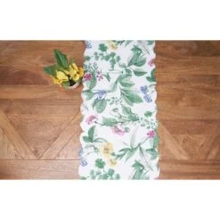 Elevate your dining experience with the exquisite Marcy Blooms Rectangle Cotton Table Runner. Measuring 14 inches by 51 inches, this stunning table runner features a vibrant floral design that brings a refreshing touch to any kitchen or dining space. Crafted from high-quality cotton, it offers a soft, durable surface that not only enhances your table’s aesthetic but is also easy to clean, making it perfect for everyday use or special occasions. The beautiful blooms create a charming atmosphere, ideal for family dinners, holiday gatherings, or simply adding a touch of elegance to your breakfast nook. Its versatile design allows it to seamlessly complement various decor styles, from rustic farmhouse to modern chic. Whether you place it on your dining table, kitchen island, or coffee table, the Marcy Blooms table runner creates an inviting ambiance that encourages togetherness. Enjoy your meals in style and make every dining experience memorable with this delightful piece of decor.