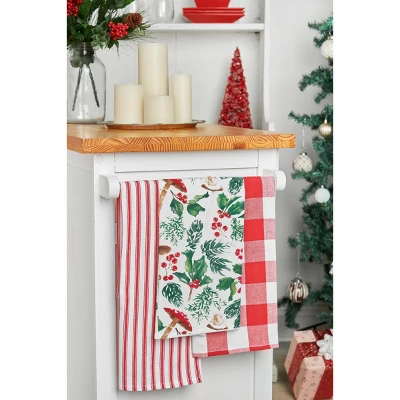 Spruce up your kitchen with the Mushroom Meadow Printed Kitchen Towel with artwork from Beth Grove. Featuring a sprightly and leafy woodland mushroom theme and fruity seasonal holiday color palette, this vibrant towel is sure to put a smile on your face. Brighten up your kitchen with a little nature-inspired cheer!