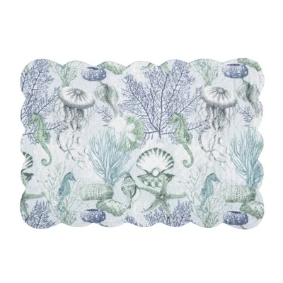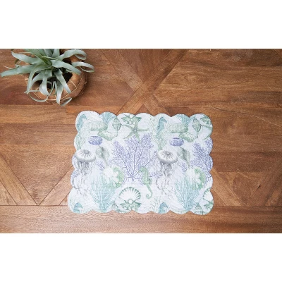 Enhance your dining experience with the Shoreline Waters Scalloped Rectangle Cotton Placemats, a perfect addition to any table setting. This set of 6 placemats features a charming nautical design with coral, seashells, and seahorses, bringing a coastal vibe to your kitchen, dining room, or outdoor patio. The placemats are made from high-quality cotton, providing a durable and soft surface to protect your table from spills, scratches, and heat. Whether you’re hosting a casual brunch or a formal dinner, these placemats add an elegant touch that complements any decor. The design is versatile enough to be used in any season, making them suitable for spring, summer, or year-round enjoyment. Easy to care for, these placemats are machine washable, ensuring hassle-free maintenance while keeping them looking fresh and vibrant. With this set of 6, you’ll have everything you need for a complete and stylish table setting. Perfect for family meals or entertaining guests, they bring both beauty and functionality to your home.