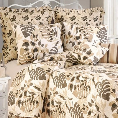 - Create your own island bungalow with the Silhouette Mini Set. Sleep sweetly surrounded by large palm leaves in neutral tones perfect for accessorizing. Reverse to an alternate look with just a flip of the quilt. Machine washable for easy care, this luxury oversized bedding set includes one quilt and two standard shams.
