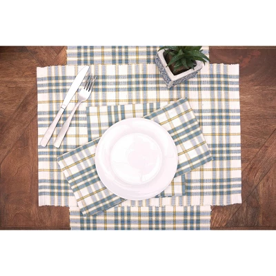 Build a foundation of classic style with the Simmons Plaid tabletop collection. The soft blue, yellow and white plaid of this woven collection is perfect for the vintage farmhouse look, or even a contemporary twist on a traditional French kitchen. Coordinate the woven tabletop setting and Simmons Plaid accessories to create everyday sophistication. Crafted of 100-percent cotton, iron safe and machine washable for easy care. Love this look? Our Simmons Plaid collection is also available in an apron and pot holder/oven mitt and ruffled valance.