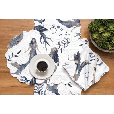 Swim with painterly mermaids and dream of the cool sea breeze with the Sister Sirens placemats. This luxury placemat brings all the romance, wonder, and mystery of the sea to the kitchen. Reverse this luxury placemat to a printed kelp and seaweed design for a more subtle coastal look.