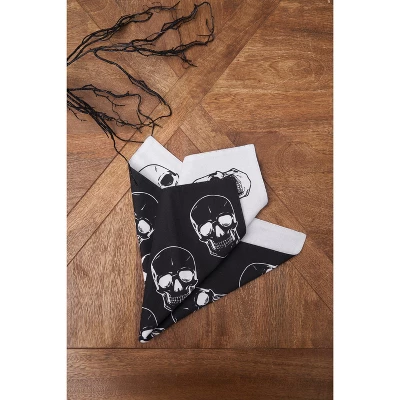 - Add a bold seasonal touch to your table with this set of six cotton napkins featuring a striking black and white skeleton skulls motif. Perfect for enhancing autumn dining, fall harvest gatherings, or creating a fun Halloween-inspired tabletop look.