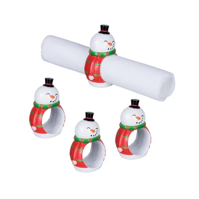 Add a festive touch to any holiday get-together with this Snowman Napkin Ring Set. Crafted from resin, they feature a jolly snowman dressed in a red and green outfit, complete with a smiling face, carrot nose, and black top hat. Fun and festive, they’ll bring a holly jolly cheer to any dinner table.