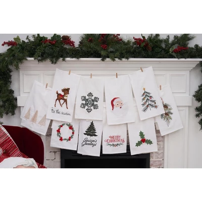 Embrace the holiday spirit with the charming Vintage Reindeer Kitchen Towel. This beautifully embroidered flour sack towel features an adorable deer adorned with a decorative harness, complete with delightful bells and festive holly berries nestled among its antlers. The soft white background adds a delicate vintage touch, enhancing the overall design. Beneath the deer, the phrase tis the season is elegantly displayed in flourishing text, adding a warm, festive sentiment.