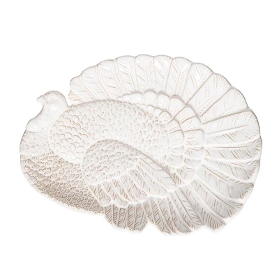 Serve up Thanksgiving delights on our White Turkey Platter. Crafted with attention to detail, this platter features a beautifully embossed turkey design, adding a touch of elegance to any holiday table. Whether showcasing the main course or a selection of appetizers, this platter is a versatile and stylish addition to entertaining essentials.