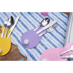 C&F Home Aqua Easter Bunny Rabbit Felt Silverware Serving Napkin Holder Sleeves Set Of 6