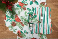 C&F Home Cardinal Wildlife Pinetree Sprig Birds Design Cloth Napkins, Set Of 4