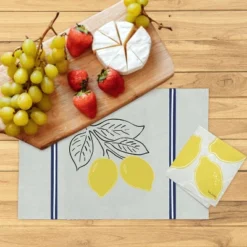 C&F Home Lemon Stripe Placemats Set Of 6 Yellow Elegant Painting, 14″ X 20″