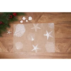 C&F Home Sandy Coast Starfish Coral Shells Placemats Set Of 6 Beach Coastal, 14″ X 20″