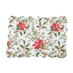 C&F Home Seashell With Holly Christmas Embroidered Set Of 6 Cotton Placemats 13″ X 19″